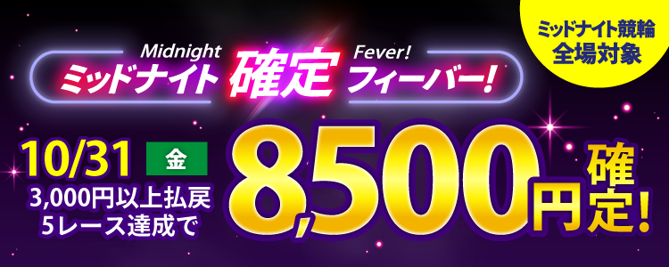 【週末は激アツ!】10/31はミッドナイト競輪全場対象!確定フィーバー!